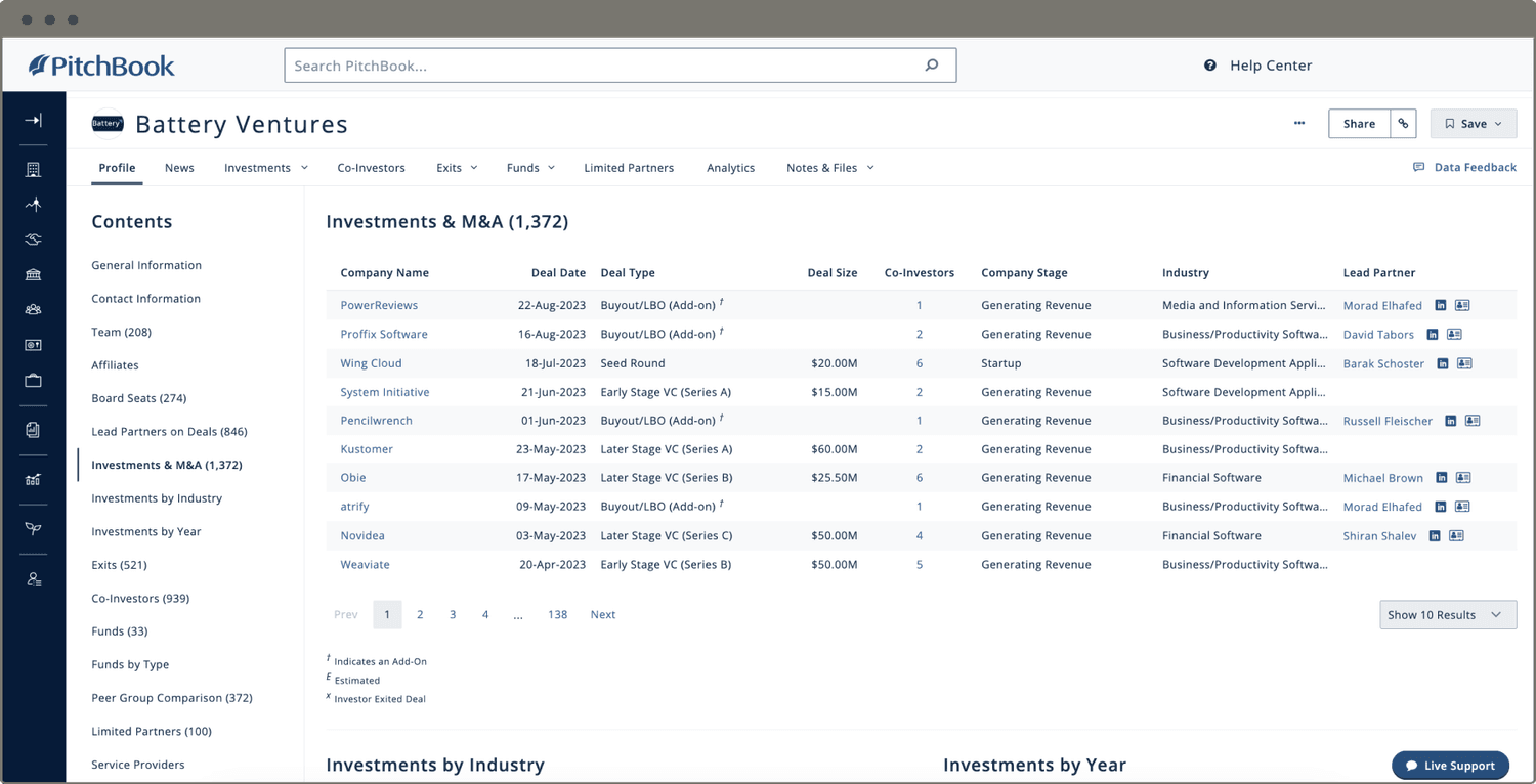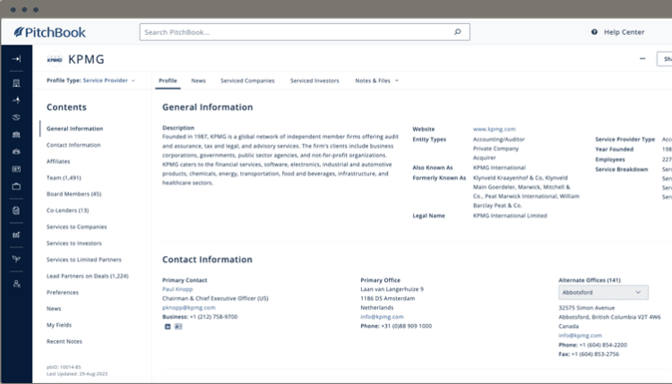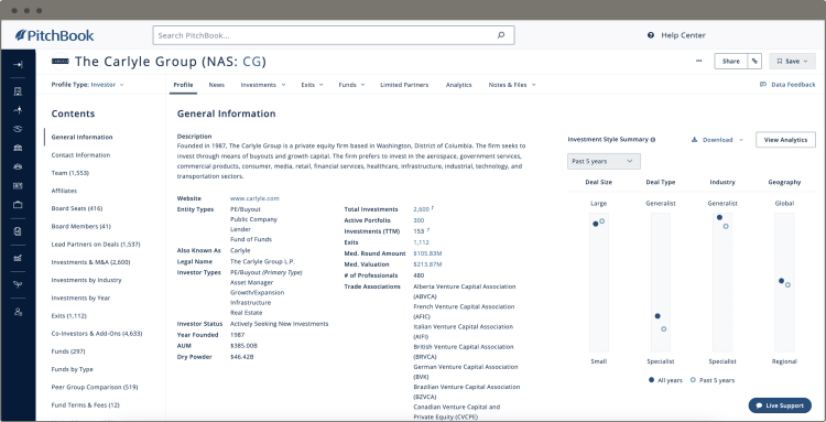 Get important details about a PE deal, including size, type, date, and more. Plus, see a snapshot of company financials at the time of a deal with income statements, balance sheets, deal multiples, cash flows, and ratios. Evaluate companies using metrics like financing status and financing source, capital raised to date, percent acquired, and employee count.