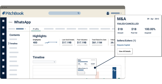 Access the most comprehensive M&A database, dig deep into our mergers and acquisitions data, and see how investment professionals in the space use PitchBook to make better business decisions.