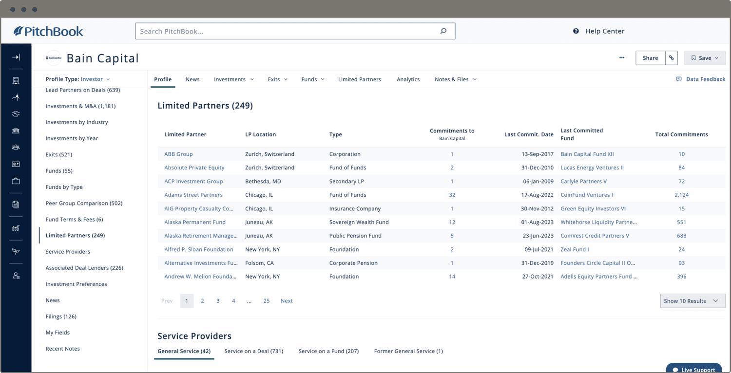 Discover which limited partners have committed to a private equity firm fund, as well as the size of their commitments. Click on an LP to get even more information about them.